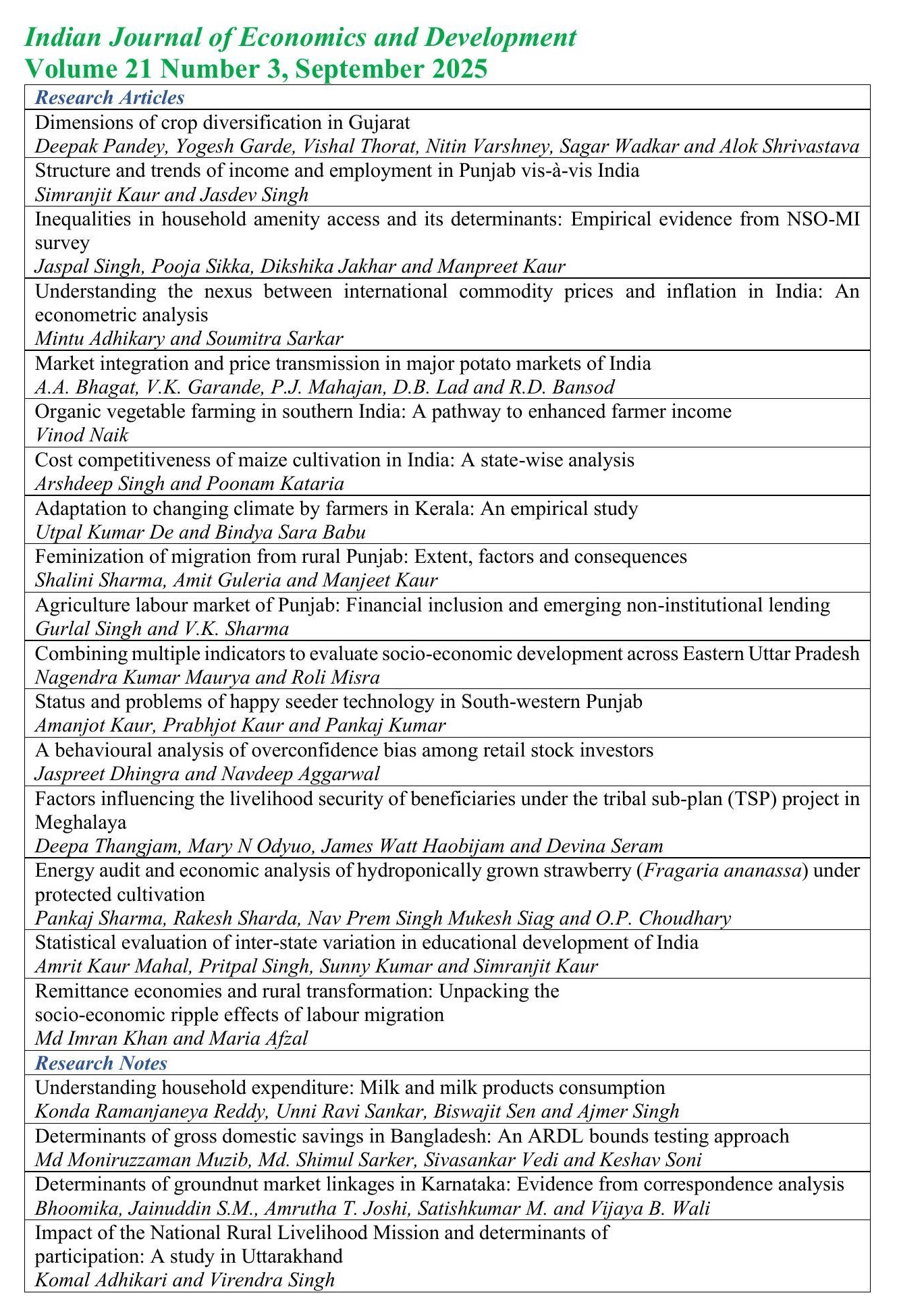 Call for reviewer for Indian Journal of Economics and Development: Submit the CV